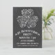 Un trébol dibujado tiza linda con símbolos irlandeses en una pizarra. Personalizar con su propio texto. Ilustracion original por el pj_design. Artículos a juego disponibles. ¡El día de St Patrick feliz!