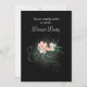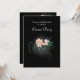 Una invitación de cena de gala clásica y elegante con una ilustración de delicadas flores rosadas floreciendo con espirales verdes y hojas en un fondo negro. La sombra gris claro brillante centrada alrededor de las flores acentúa y ilumina su belleza.