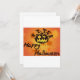 Una ilustración feliz de halloween con una cabeza de calabaza feliz. Este diseño se ve realmente efectivo en estas invitaciones