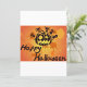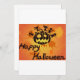 Una ilustración feliz de Halloween con una cabeza de calabaza feliz. Este diseño se ve realmente efectivo en estas invitaciones