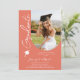 Fotografia Graduation Party Modern Elegant Script Invitation muestra tu foto favorita con el texto "Graduado" en una tipografía elegante de escritura caligráfica sobre un fondo de melocotón. Añada a continuación la información de su invitación para graduarse. Personalice editando el texto en los cuadros de texto proporcionados. Enviar como descarga digital instantánea, como invitación física por correo o ambos. Creado por ©2025 Evco Studio www.zazzle.com/store/evcostudio
