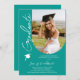 Fotografia Graduation Party Modern Elegant Script Invitation muestra tu foto favorita con el texto "Graduado" en una tipografía elegante de escritura caligráfica sobre un fondo verde. Añada a continuación la información de su invitación para graduarse. Personalice editando el texto en los cuadros de texto proporcionados. Enviar como descarga digital instantánea, como invitación física por correo o ambos. Creado por ©2025 Evco Studio www.zazzle.com/store/evcostudio