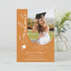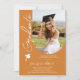 Fotografia Graduation Party Modern Elegant Script Invitation muestra tu foto favorita con el texto "Graduado" en una tipografía elegante de escritura caligráfica sobre un fondo de canela. Añada a continuación la información de su invitación para graduarse. Personalice editando el texto en los cuadros de texto proporcionados. Enviar como descarga digital instantánea, como invitación física por correo o ambos. Creado por ©2025 Evco Studio www.zazzle.com/store/evcostudio