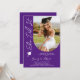 Fotografia Graduation Party Modern Elegant Script Invitation muestra tu foto favorita con el texto "She It Was" (Ella lo hizo) en una elegante tipografía de escritura caligráfica sobre un fondo morado. Añada a continuación la información de su invitación para graduarse. Personalice editando el texto en los cuadros de texto proporcionados. Enviar como descarga digital instantánea, como invitación física por correo o ambos. Creado por ©2025 Evco Studio www.zazzle.com/store/evcostudio