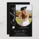 Fotografia Graduation Party Modern Elegant Script Invitation muestra tu foto favorita con el texto "Graduado" en una tipografía elegante de escritura caligráfica sobre un fondo negro. Añada a continuación la información de su invitación para graduarse. Personalice editando el texto en los cuadros de texto proporcionados. Enviar como descarga digital instantánea, como invitación física por correo o ambos. Creado por ©2025 Evco Studio www.zazzle.com/store/evcostudio