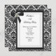 21, 30, 40, 50, 60, 70, fiesta de cumpleaños Imagen de la perla Black Damask Chica de mujeres negras floridas Elegant Classy Invitation Uso formal para cualquier Personalizar de invitación al evento para cambiar o agregar detalles.