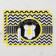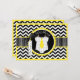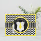 Impresión blanco y negro del galón con acentos amarillos y un puente del lunar con un lazo y un arco amarillos 3D-look y cinta para una tarjeta de la invitación de la fiesta de bienvenida al bebé del muchacho.