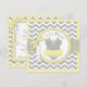 Tutú dulce del puente de la impresión del lunar en cuerda para tender la ropa y el arco 3D-look y cinta para una tarjeta de la invitación de la fiesta de bienvenida al bebé del chica. Los colores son amarillos y grises.