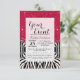 Invitación Impresión de cebra con Purpurina de pincel rosa fa