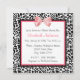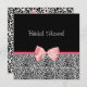 Una moderna invitación a la ducha con impresión de leopardo blanco y negro con un lindo arco de cinta rosa envuelto como un regalo. Personaliza para invitar a tus invitados a asistir.