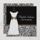 Haz una declaración de moda con estas invitaciones a la ducha de novias con estampado de leopardo blanco y negro, con un moderno vestido de boda en una percha decorada con una cinta de color marrón carafe atada a un lindo arco. Esta invitación a la impresión animal de moda se puede personalizar agregando el nombre de la novia que debe ser, los colores de su boda e información de fiesta a las áreas de texto de la plantilla de personalizable. Esta elegante invitación forma parte de la colección de colores de la moda de moda 2013. Imagen impresa plana, no cinta real.