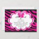 Esta invitación para la fiesta de cumpleaños incluye una impresión de tigre morado y negro y puntos de polka blanco y negro.
