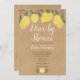 Con una vegetación moderna de limones, este elegante impulso botánico por invitación a la ducha de bebé puede ser personalizado con su información especial de eventos y sus iniciales de monograma al revés en un rústico fondo de kraft. Diseñado por Thisisnotme©