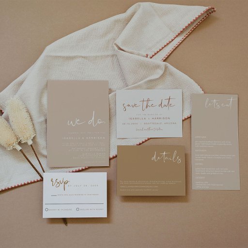 Esta boda ahorra la fecha incluye un delicado tipo de letra manuscrito y un moderno diseño minimalista. Edite fácilmente *most* frases para satisfacer sus necesidades y edite todos los colores a su gusto. La combinación de tonos beige y blanco de la tierra bohemia lo convierte en el complemento perfecto para su boda boho, desierto o terrenal.
