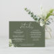 Un elegante boda floral verde oliva información sobre la tarjeta del recinto personalizada con sus detalles especiales en una tipografía elegante y sus nombres y fecha boda al revés. Diseñado por Thisisnotme©