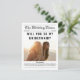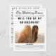¿Buscando una manera única de pedir a tus damas favoritas que estén a tu lado en tu día especial? Nuestra tarjeta estilo periódico "¿Serás mi dama de honor?" es una elección perfecta. Este elegante y clásico diseño presenta todos los detalles importantes que sus damas de honor necesitan conocer, incluyendo fecha de boda, ubicación y esquema de colores. Además, puedes personalizar cada tarjeta con información individual sobre la dama de honor, incluyendo información sobre vestir y cualquier rol especial que pueda tener en el boda. El diseño en blanco y negro hace una declaración atemporal, mientras que la capacidad de añadir fotos personales añade un toque de fantasía y personalidad. ¡Haga que sus damas de honor se sientan realmente especiales con este toque único! Haga clic en "personalizar" para añadir sus fotos y personalización, "editar en la herramienta de diseño" para editarlas y cambiar los colores de su tema boda.