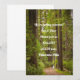 Invitación informal rústica de boda en el bosque - Palabras sencillas e informales en texto blanco sobre una foto de una pareja de novios caminando por un sendero a través de un bosque de árboles altos y exuberantes.