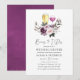 Invitaciones de boda boho florales pintadas a mano con acuarela violeta, melocotón y ciruela para la fiesta de compromiso, la ducha de la pareja y el ensayo de la boda.