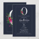 Invitación Inicial moderna última de monograma O azul floral