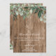 Efecto de madera amor corazón tallado invitación a la boda rústica. Inserte sus propias iniciales para un divertido monograma y luego agregue los detalles de su boda para esta invitación informal pero hermosa a la boda. Hojas verdes que cuelgan de un tronco con efecto de madera, con un corazón esculpido y descarado. Texto blanco a destacar, con una mezcla de guión elegante y un tipo de letra de bloque limpio.
