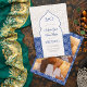 Nuestras invitaciones de boda inspiradas en Marruecos con un hermoso arco azul real y textura de madera floral en bloque de color son la elección perfecta para una celebración de boda única e inolvidable. Prepárense para impresionar a sus invitados y establecer el tono para su gran día, con hermosas iniciales, agregue 3 de sus fotos, los colores son totalmente editables. Perfecto para bodas exóticas y tropicales de destino.
