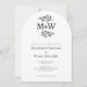Sencilla pareja boda monograma con detalles de hojas de arte de línea botánica para una bella y única invitación minimalista de boda blanca y negra. Cambie cualquiera de los textos a personalizar.