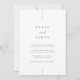 Una hermosa invitación de boda minimalista basada en la tipografía con sus nombres en letras clásicas, junto con letras modernas con acento manuscrito. Personalice con los detalles de su boda debajo. Nuestra colorida ceniza hace una declaración clásica con letras negras suaves sobre un fondo blanco y nítido.
