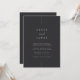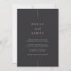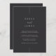 Una hermosa invitación de boda minimalista basada en la tipografía con sus nombres en letras clásicas, junto con letras modernas con acento manuscrito. Personalice con los detalles de su boda debajo. Nuestra colorida ceniza hace una declaración clásica con letras blancas en un suave fondo negro.