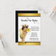 Tarjetas de baby shower trae un libro con adorable niña étnica bebé con un disfraz de abeja adorable en un bonito fondo negro y dorado con abejas volando. Puede personalizar estas tarjetas de inserción de baby shower de niña con sus detalles en el estilo de fuente y redacción de su elección.