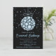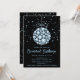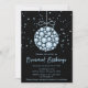 Esta elegante y glamorosa invitación a fiestas navideñas incluye un adorno navideño bauble y estrellas azules en un fondo negro. El texto combina el guión manuscrito y las fuentes sans serif modernas para un aspecto elegante y sofisticado. Los destellos y el falso purpurina añaden un toque festivo y mágico.