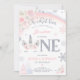 Invitación a unicornio de oro y rosado de primer cumpleaños de invierno de Unicornio