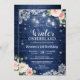 Invitación Invierno Azul Terreño Bebé Floral Primer Cumpleaño