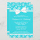 Una invitación linda de la fiesta de cumpleaños de ONEderland del invierno. Atracción de los copos de nieve blancos en un fondo azul verde azulado con un gráfico blanco del arco. Los diseños son ilustraciones/gráficos impresos plano - CINTA NO REAL.