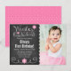 Una linda invitación de fiesta de cumpleaños para una niñita con temática de invierno. Con copas de nieve rosas y remolinos en un fondo de pizarra. Personalice fácilmente con la información de fotos y fiestas de su hijo.
