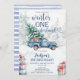 Invitación al primer cumpleaños de Winter ONEderland. Esta encantadora invitación es perfecta para una celebración de primer cumpleaños con temática invernal para tu niñito. Cuenta con adorables gráficos de camiones azules, nieve, bosques y árboles forestales, lo que crea una atmósfera caprichosa y festiva. Personalice fácilmente el diseño con su propio texto Parte de una colección. Los elementos coincidentes están disponibles.