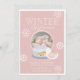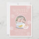 Esta tierna invitación a la foto de primer cumpleaños de este chica "invernal en tierra firme/maravillosa" incluye un fondo de color rosa bebé con un globo de nieve, copos de nieve y paloma blanca. El reverso presenta un fondo gris claro con motivos de nieve blancos. Personalice sus necesidades. Puedes encontrar más productos a juego en mi tienda.