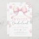 Invitación Invierno Onederland Pink Silver Bow Primer cumplea