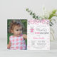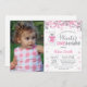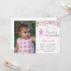 Invitación al primer cumpleaños del Chica del Oso Polar de Oso Polar de la Tierra de invierno con foto de personalizado. Copo de nieve rosa y gris. Invitación a la fiesta de cumpleaños del chica. Día feriado de invierno. Fondo blanco. Para una mayor personalización, haga clic en el botón "Personalizar" y utilice nuestra herramienta de diseño para modificar esta plantilla.