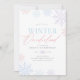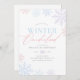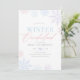 Invite a amigos y familiares a la fiesta de cumpleaños de su pequeña pareja con esta invitación temática de 'Winter Overderland', con copos de nieve rosas, púrpura y azul.