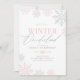 Invite a amigos y familiares a su pequeña fiesta de cumpleaños con esta invitación temática de 'Winter Onederland', con copos de nieve rosas y plateados.