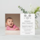 Invitación de primer cumpleaños para un bebé por copas de nieve en invierno. Cuenta con fondo gris de copo de nieve. Plantilla de fotografía con licencia de Pixabay bajo CC0 y que debe ser reemplazada por su propia foto