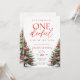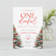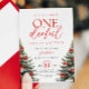 Invitación de primer cumpleaños con pinos y detalles del arco rojo Chica de invierno de Bow Rojo.