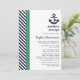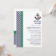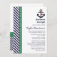 El ancla azul marino y verde le invita a bañarse con un tema náutico. Borde de rayado blanco y naval con estampado de color verde y blanco y un ancla con una estrella y un corazón rojo colgando de una cuerda. Este diseño adorable es perfecto para una ducha de boda de verano o primavera con temática oceánica o de playa. Personalizar la parte delantera y trasera de esta tarjeta para decir lo que quieras. Obra de arte © Chrissy H. Estudios, LLC.Todos Los Derechos Reservados.