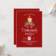 Este fiesta temático para Navidades presenta una hermosa tipografía de Navidades retro con un acento a la luz de las velas y un arco rojo y un follaje verde. Fondo rojo personalizado con tipografía blanca.