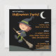 Invite a todo el mundo a su fiesta de Halloween con estas adorables invitaciones personalizadas de Halloween que presentan un lindo ilustracion de una pequeña bruja montando su palo de escoba en el cielo nocturno. Listo para el personalizar con su nombre, dirección e información del fiesta.