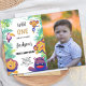 ¡Celebra el primer cumpleaños de tu pequeño aventurero con nuestra invitación de un cumpleaños salvaje! Con animales de la selva juguetones, un exuberante tema verde y una zona de fotos de personalizable, esta invitación es perfecta para una fiesta de cumpleaños divertida y memorable. Personaliza fácilmente para una celebración desenfrenada.