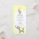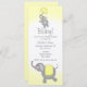 Una invitación a la ducha amarilla neutra con una madre y un elefante bebé. El elefante bebé sostiene un paraguas amarillo en su maletero mientras cae de arriba. La madre elefante está esperando en el fondo con una manta amarilla de bebé a su espalda. Personalice con detalles de su ocasión.