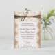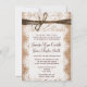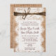 Aquí hay una invitación casera única al estilo rural con un diseño impreso en burlap y encaje con un arco de dos líneas impreso en la parte superior. La burrega, encaje y melliza son sólo diseños impresos. Es una invitación llana. La impresión de la falda del país también está en la parte trasera de la invitación. Son ideales para bodas de campo, bodas de granero y bodas rústicos.