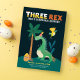 Este pequeño T-rex es un triple en las invitaciones a fiestas de cumpleaños con temática de dinosaurio. Tu futuro niño de tres años merece celebrarse con estos divertidos y divertidos dinosaurios. Personalizado 3.ᵉʳ invita a su hijo o chica. Blanco con ilustracion de tema de dinosaurios en la parte trasera.