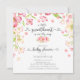 Adorable invitación a la ducha de bebé con un tipo de letra cardíaca enmarcada con hermosas flores rosas. Si lo desea, podrá cambiar de diseño para ver un ramo floral de coordinación.